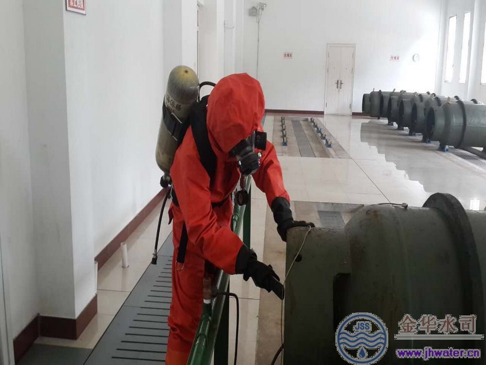 8月14日下午,公司金沙湾水厂在加氯间召开剧毒危险品管理安全现场会议及防化服使用培训。