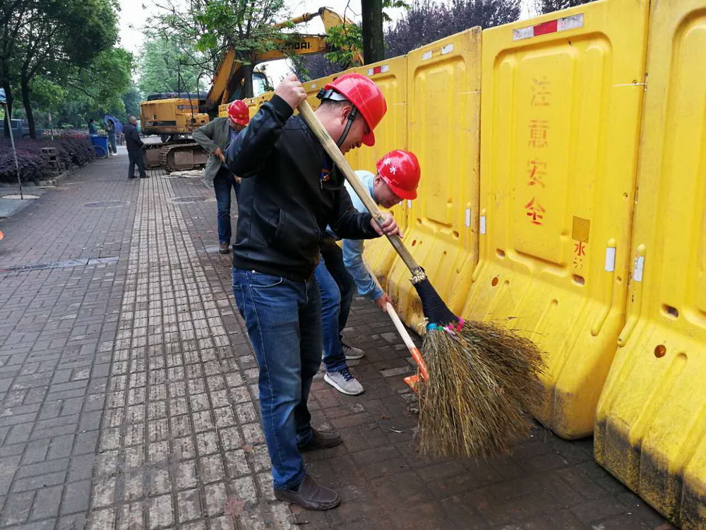 环城西路(人民西路—婺江大桥)优化改造一期工程:主管道dn1200钢板管全长约1200米左右,施工现场采取全封闭围档施工,围档搭设规范。目前该工程直管段施工已全部完成,下阶段的主要工作是进行道路横穿及新旧管碰管。党员们在施工现场学习了钢板管修口对口焊接过程,为保证施工现场整洁、安全,在场的党员同志自觉拿起扫把、铁铲,开展义务清扫活动,切实保证了施工现场的工完场清和文明施工。