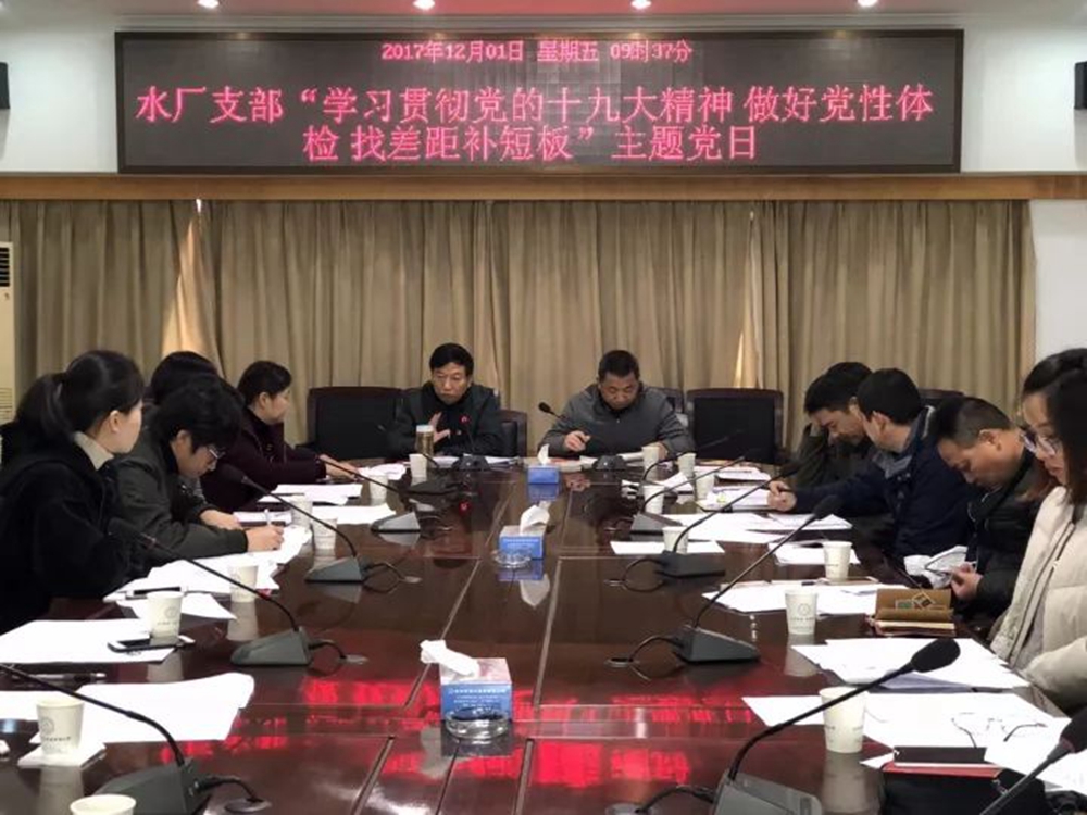 12月1日上午,水厂党支部开展主题为“学习贯彻党的十九大精神、做好党性体检、找差距补短板”的党日活动,全体党员参加。