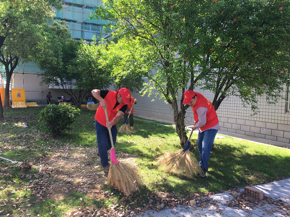 骄阳烈日下,大家纷纷拿起工具进行清扫,不怕脏、不怕累,个个奋力争先,认真清扫,将落叶集中堆放并收集进垃圾袋,大家团结协作,力争做到不放过任何一个死角。历时2个多小时,绿化带以及主道路两旁的卫生得到明显改善。