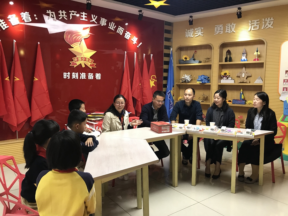 在秋滨小学校长何建平的陪同下,党员和团员代表和孩子们亲密交谈,询问他们的学习成绩和家庭情况,鼓励他们好好学习,回报社会。