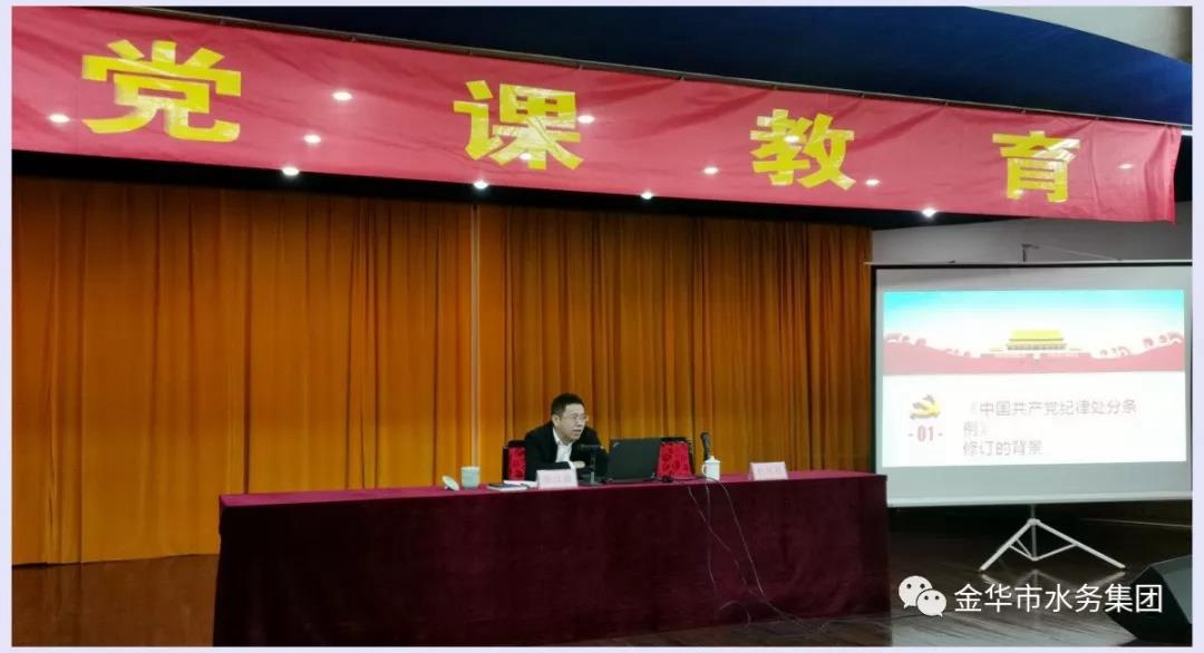 11月26日上午,金华市水务集团党委召开廉政警示教育专题学习会,本次学习会由集团党委委员、常务副总经理杜乐双主持,集团全体党员和公职人员参加。专题学习会分为两个阶段,首先是全体公职人员共同学习廉政警示教育材料和观看教育影片,第二个阶段由集团党委书记、董事长、总经理陈汝森为全体党员上了一堂题为《为全面从严治党提供铁的纪律保障》的党课。
