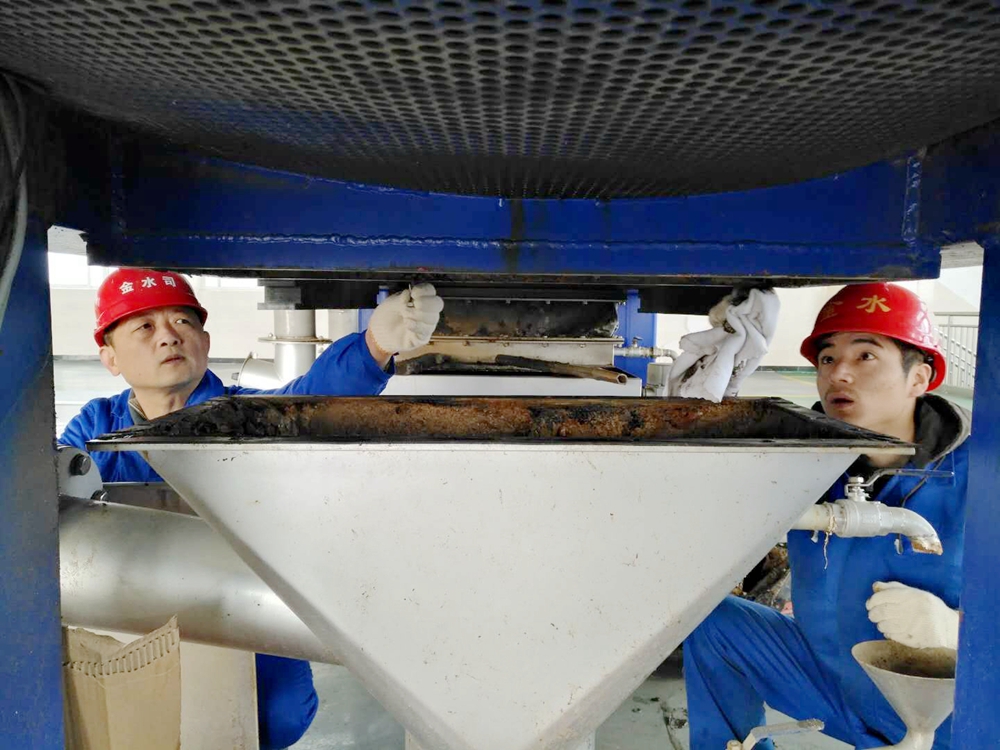 2019年1月22日上午,金华市水处理有限公司秋滨污水处理厂机修人员正认真维修保养污水处理设备——卧式离心机,另一些机修人员则在安装机房换气扇,以确保春节期间厂区设备设施安全,污水处理正常运行。据了解,目前秋滨污水处理厂日处理污水22万立方米,承担了金华大部分城区及周边多个乡镇的污水处理任务。