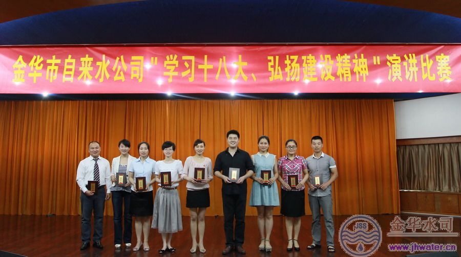 市自来水公司上下高度重视本次比赛,各部门积极选派选手精心准备、刻苦排练,公司办公室为确保演讲比赛顺利举行,召开会议进行赛事分工。比赛中,各位选手以富有激情的语言、蕴含哲理的事例,抒发了对金华供排水事业的热爱,对先进人物的敬仰和对建设精神的感悟,表达了金华水业人立足本职,认真学习、实践党的十八大精神,促进供排水事业向前发展的坚定信心,演讲激起了现场观众的共鸣,比赛现场掌声不断。