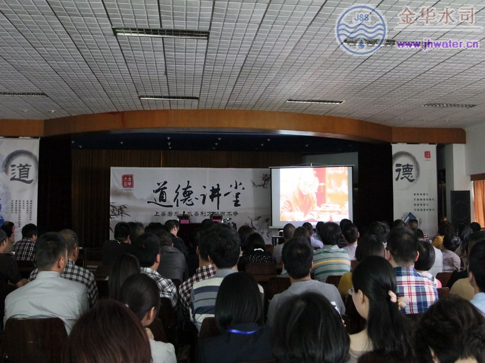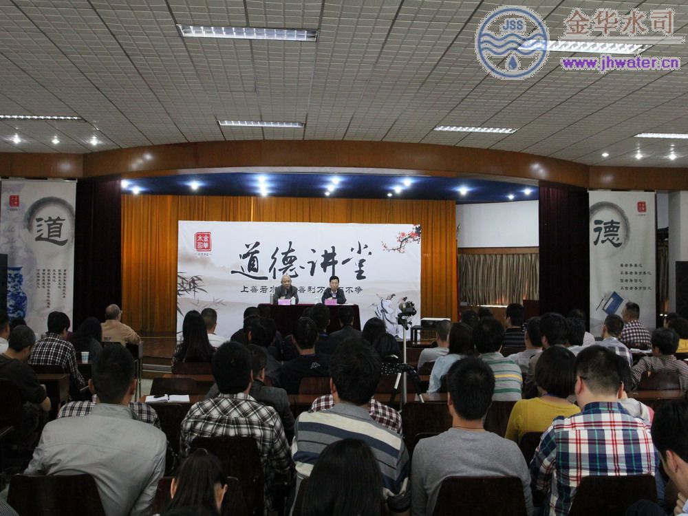 本次道德讲堂开讲,是公司按照党的群众路线教育实践活动部署,在学习教育、听取意见阶段,开展的一次“发现身边典型、学习闪光言行”专题报告会,由全国“五一”劳动奖章获得者、省劳动模范——金华市自来水公司总经理吴立新主讲,党委书记吴建诚主持,近200名员工参加。