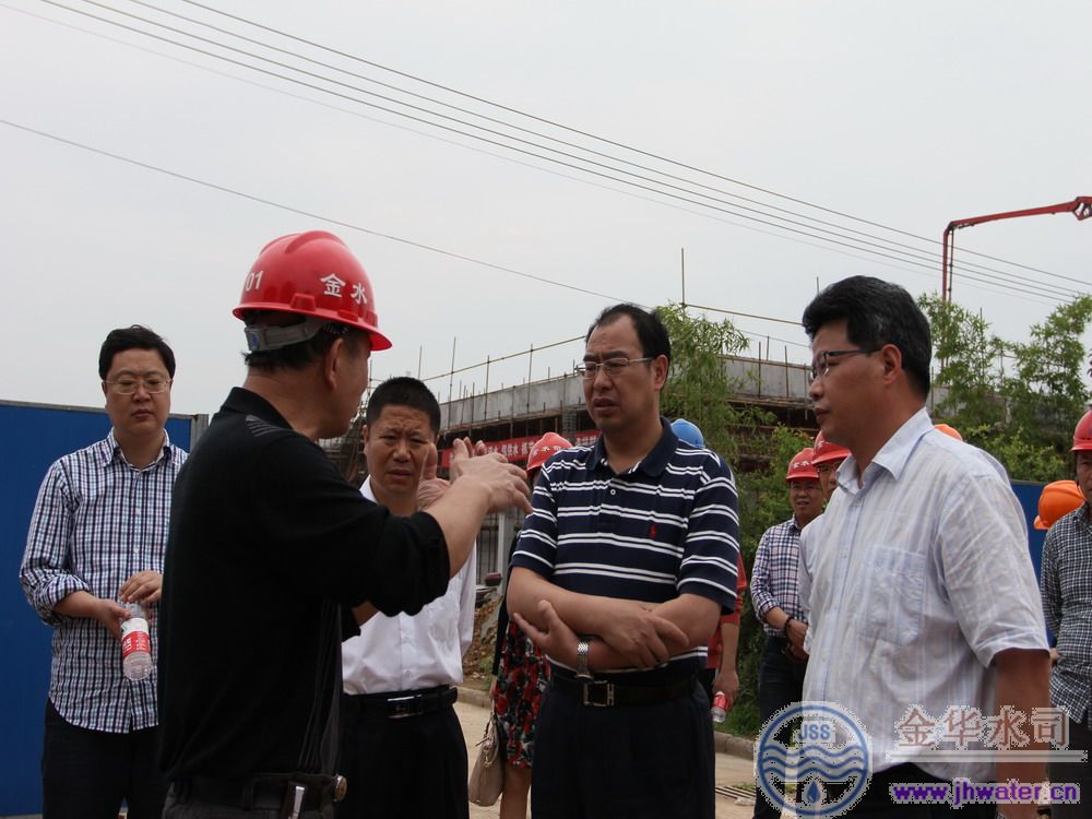 5月12日,金华市委书记徐加爱检查市区重点建设项目。徐加爱书记在副市长祝伦根、市建设局局长潜高星等领导陪同下先后来到公司承建的市第二水厂预选址所在地和秋滨污水处理厂二期工地,认真了解项目进展情况,明确第二水厂在年内动工、污水处理厂二期年内完工投入运行的建设期限要求,重点了解和协调解决项目推进过程中遇到的困难。(金春景 文/摄)
